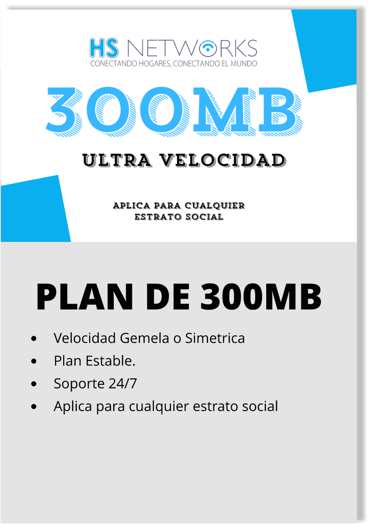 El Internet de 300 MB ofrece una velocidad equilibrada, estable y suficiente para cubrir las necesidades de trabajo, entretenimiento, estudio y comunicación de la mayoría de los hogares y pequeñas empresas.